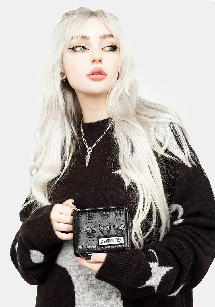 • Black faux leather debossed skull wallet