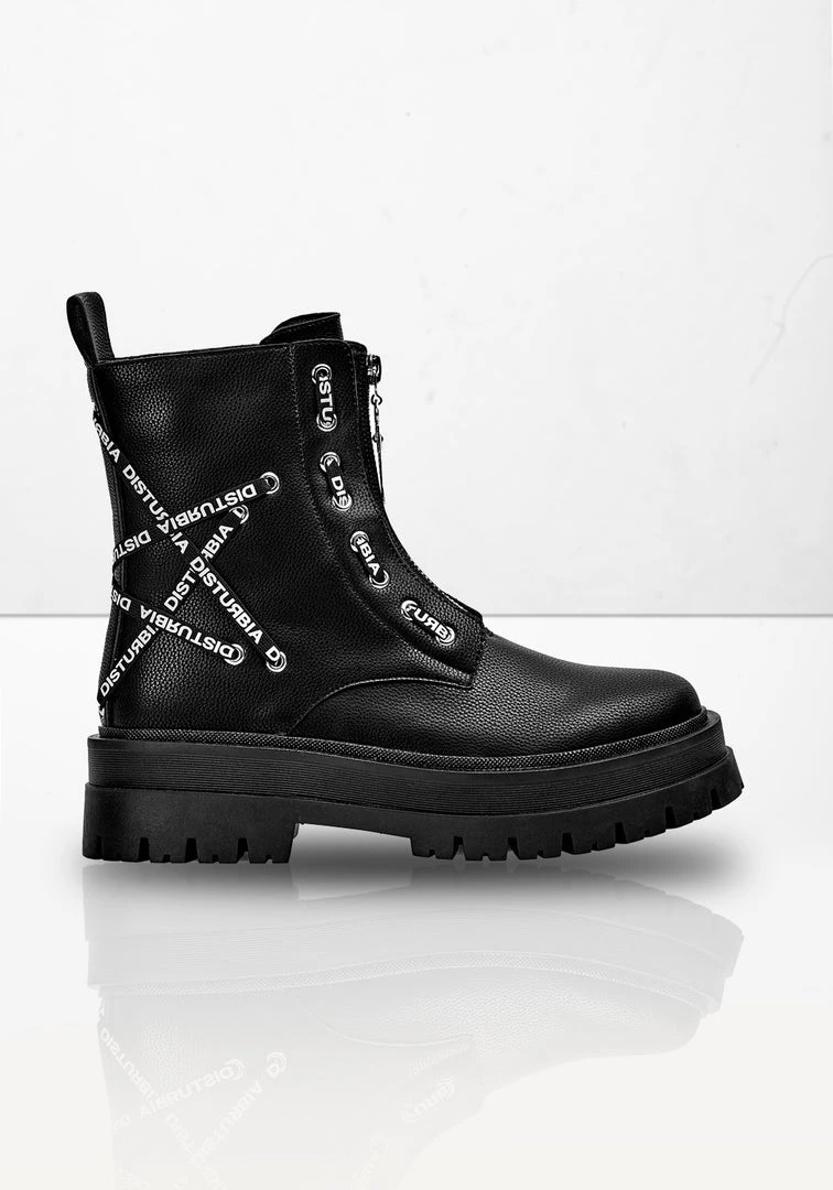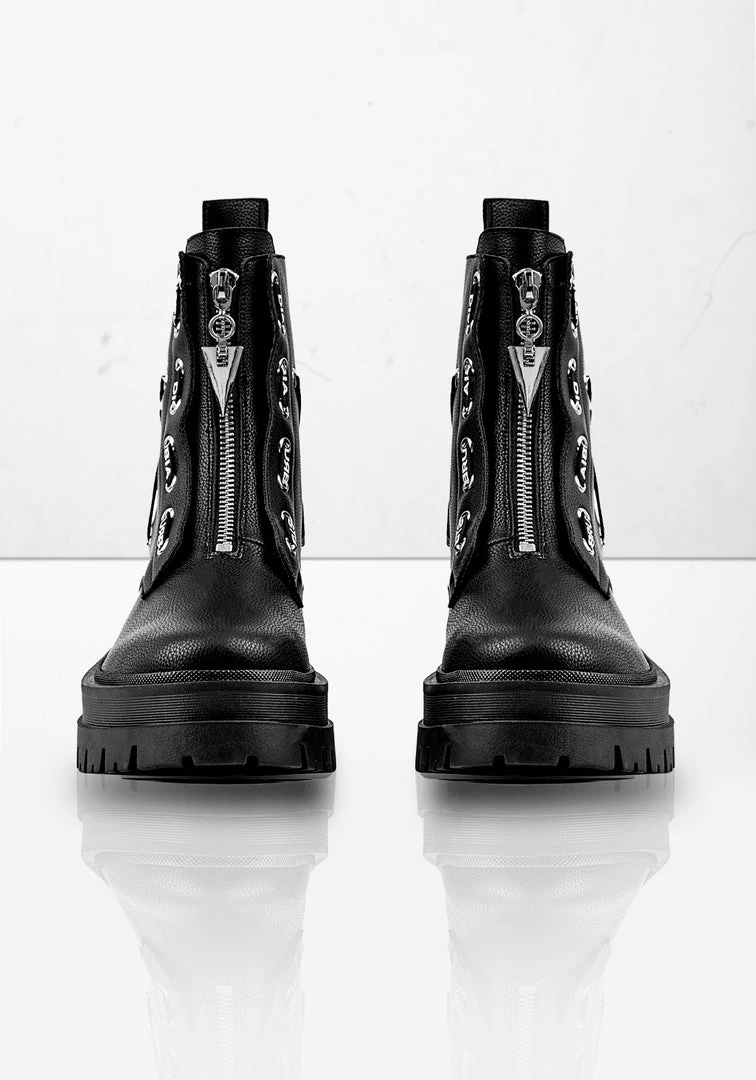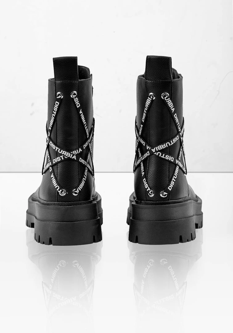 ✩ Unicursal hexagram branded mock lace detail – threaded through silver eyelets to create star shape