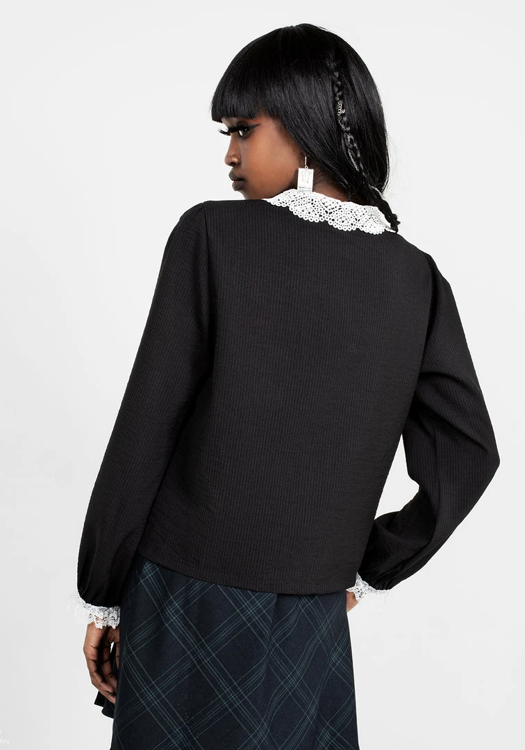 ❦ Black gothic blouse with lace collar