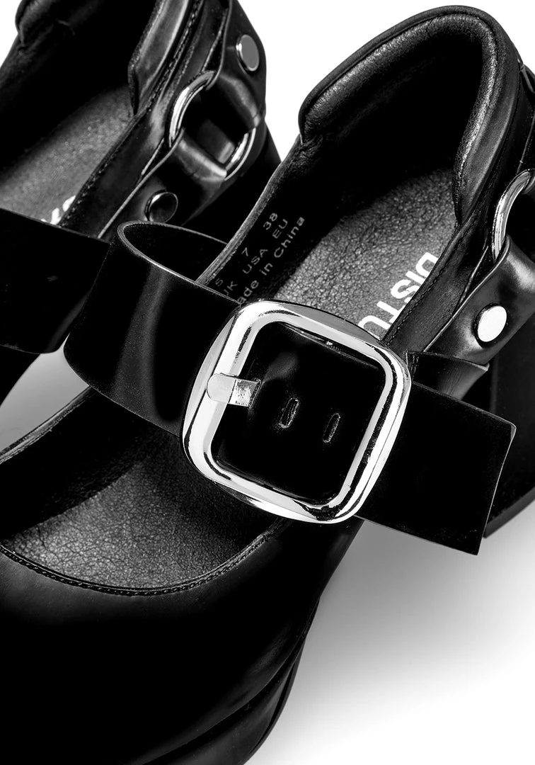 ✦ Black Mary Jane chunky short platform heelsÂ