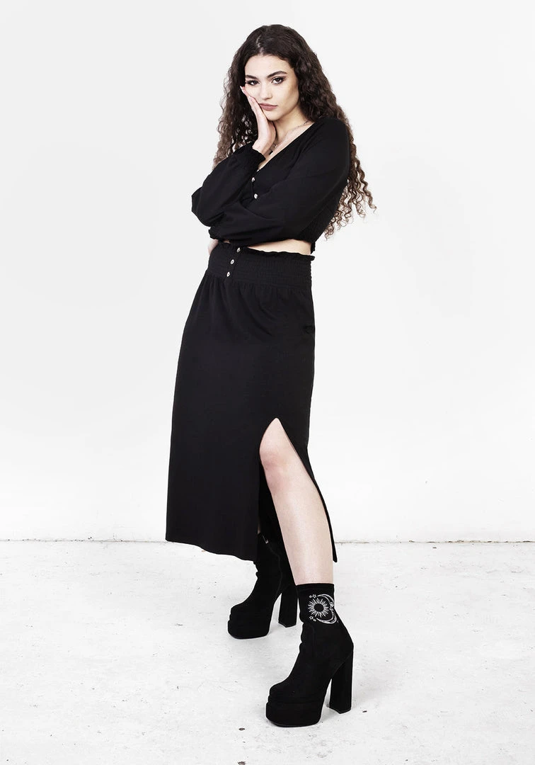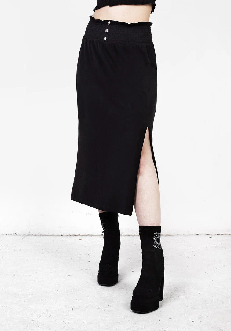 ❦ Black midaxi skirt with front leg split