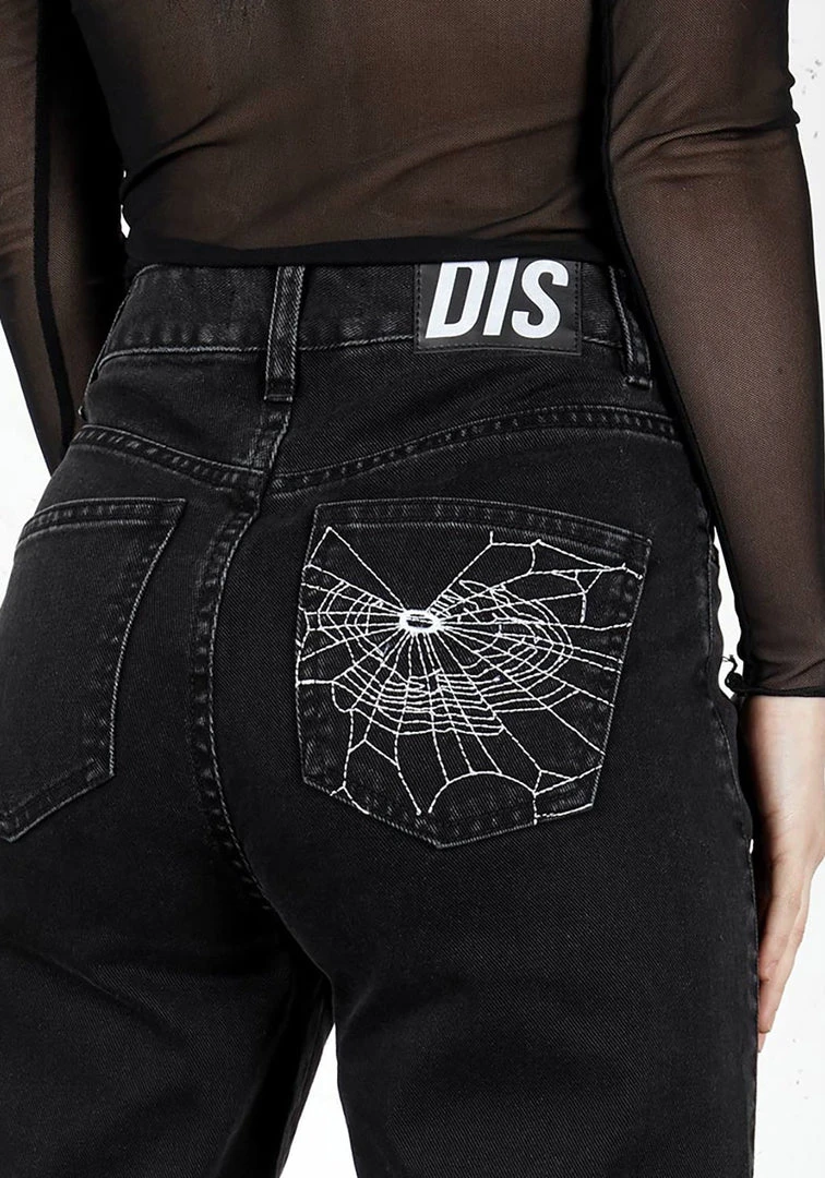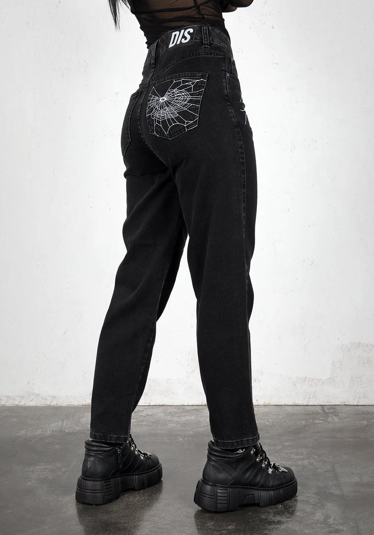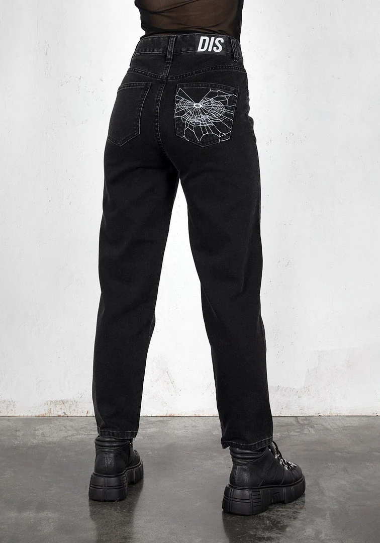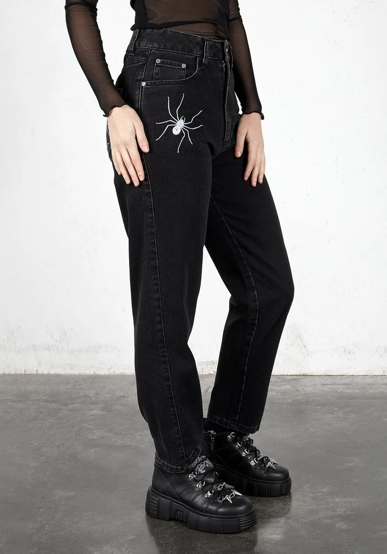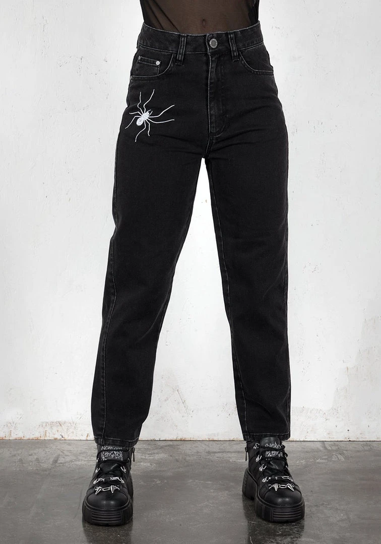 Straight leg, high-waisted ‘mom’ jean with embroideries.