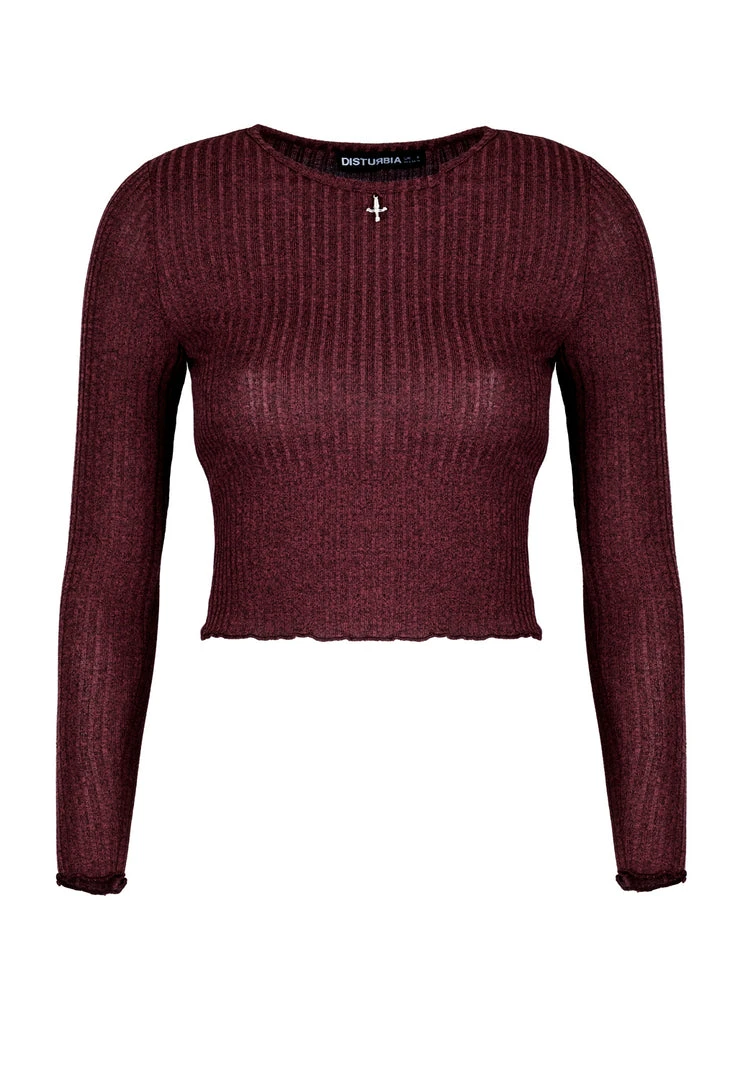 ♥ Maroon jersey long sleeve crop top