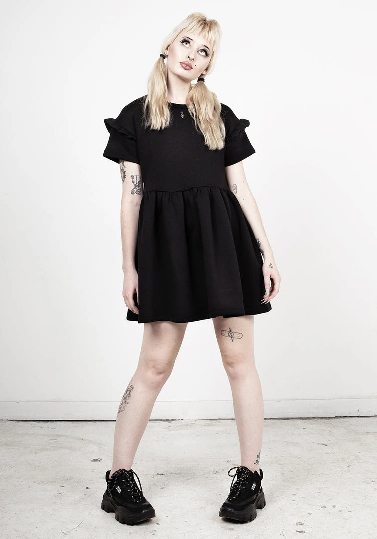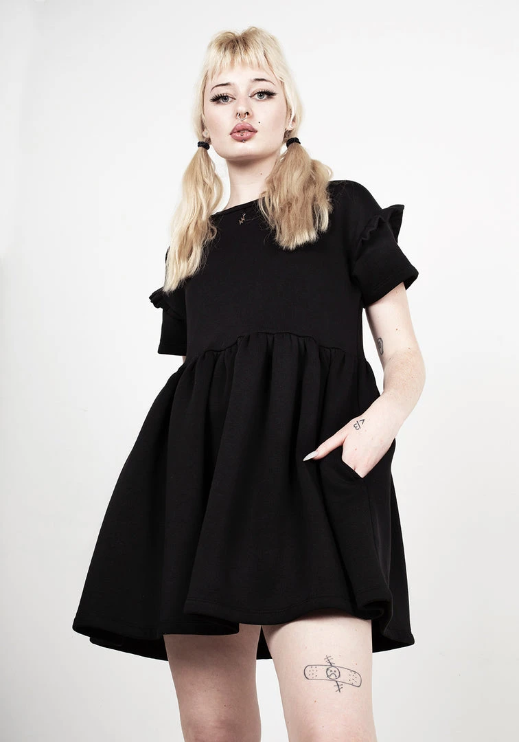✧ Solid black skater dress with frill sleeves
