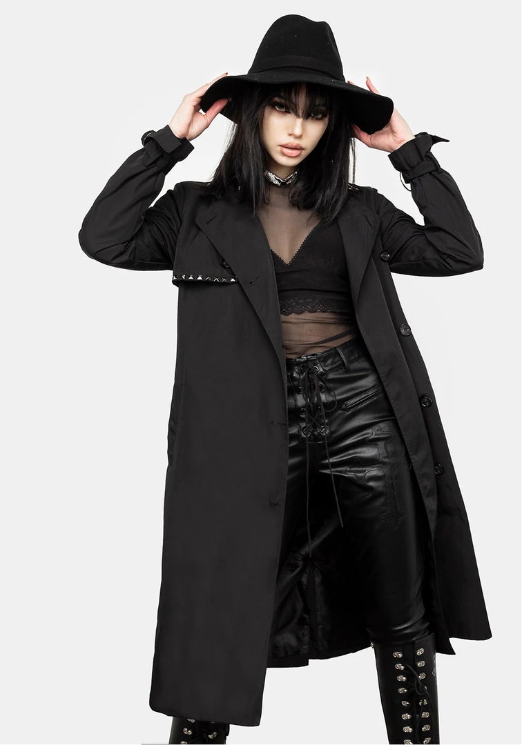 ✧ Removable belt slips through side seam loops to cinch waist, fastening with gunmetal buckle