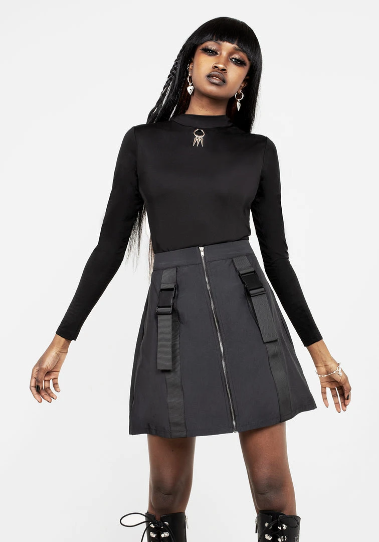 ✷ Dark silver zip centre-front fastening