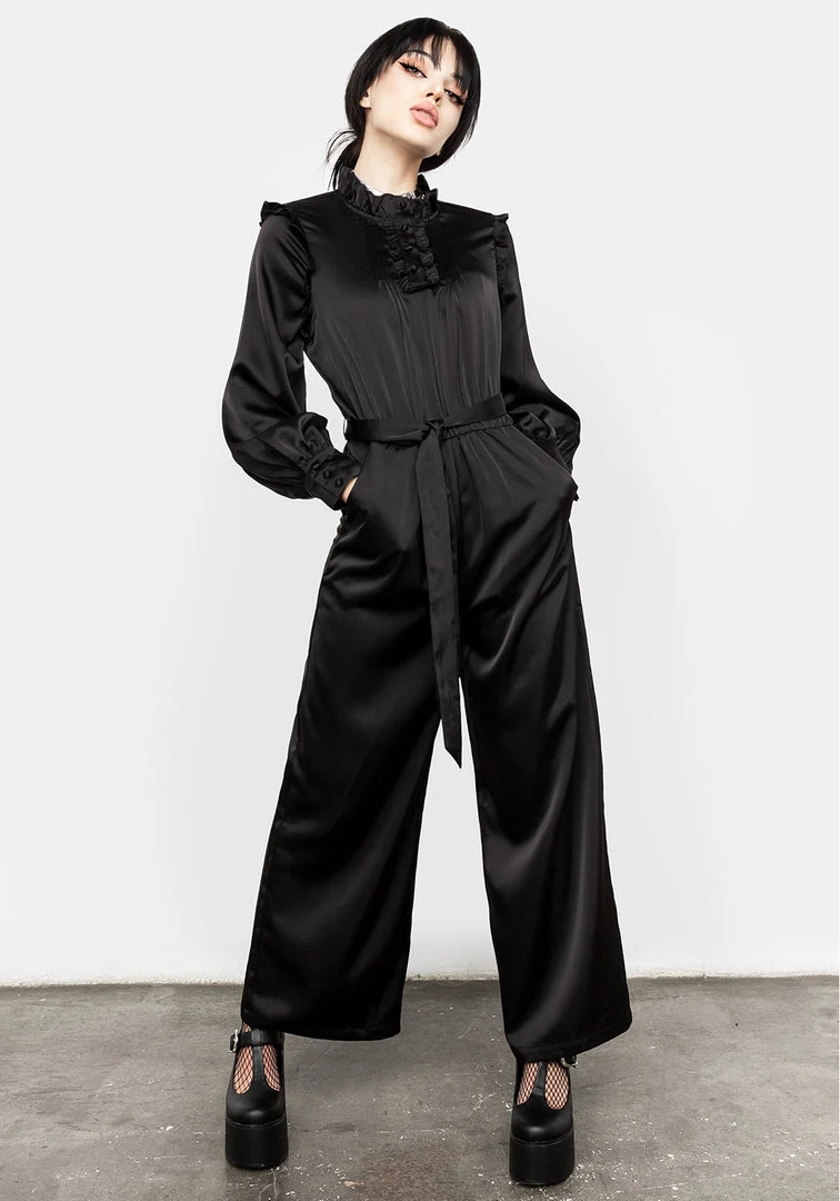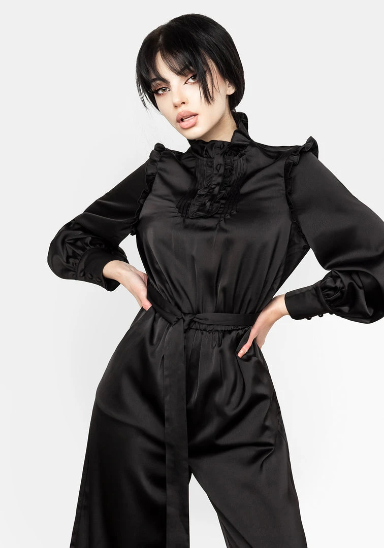 ❦ Black ruffled pintuck jumpsuit