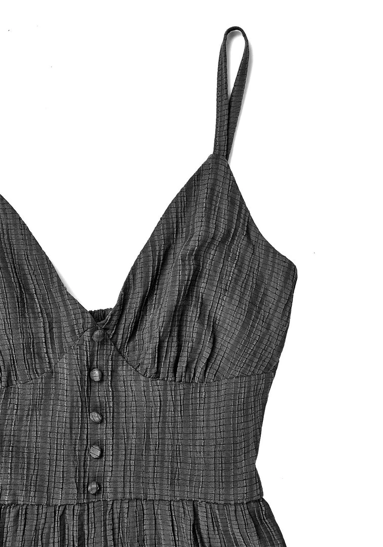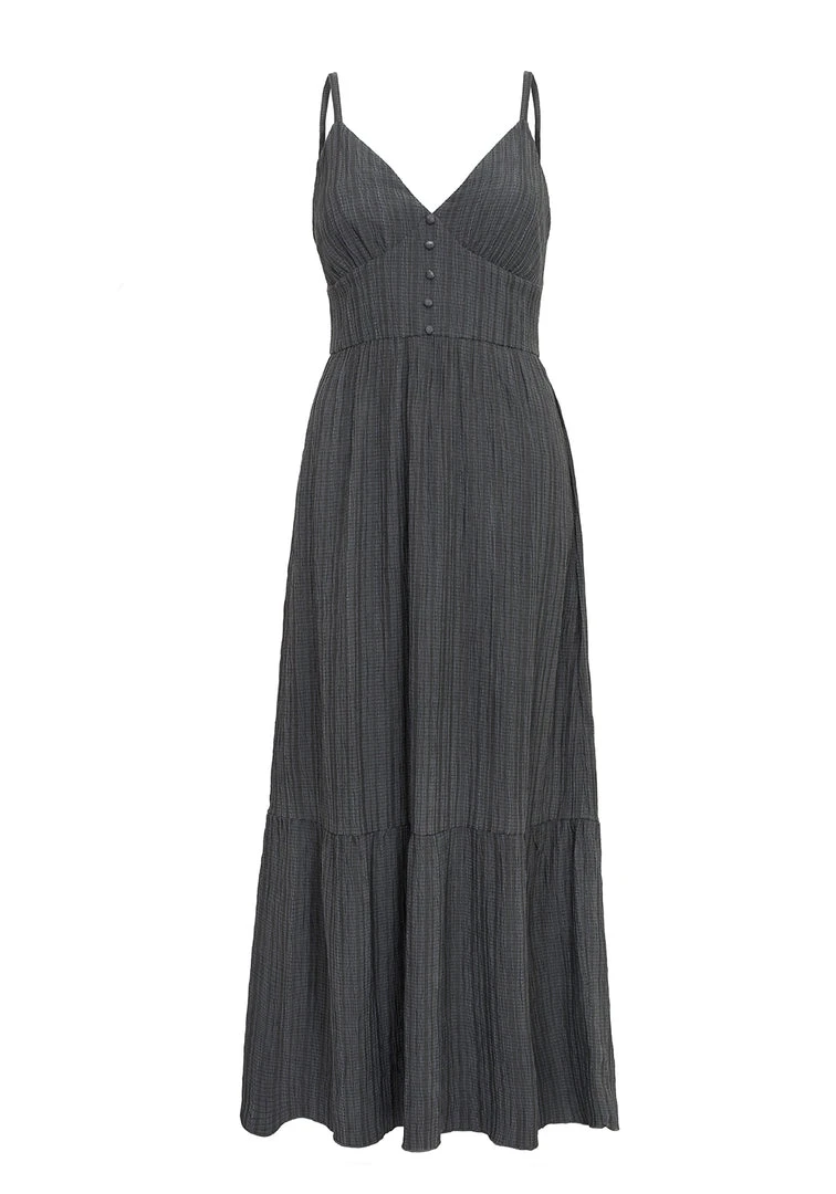 ✹ Grey textured midi tiered dress