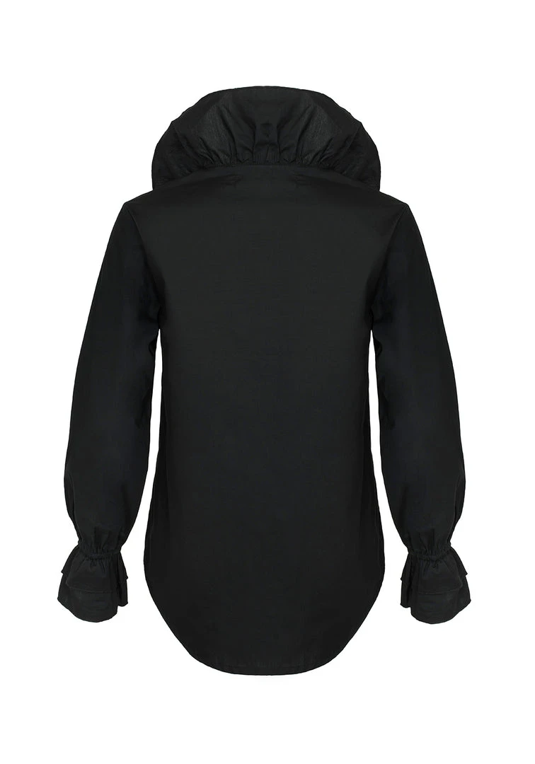 â–¶ Flared ruffle sleeves and placketÂ