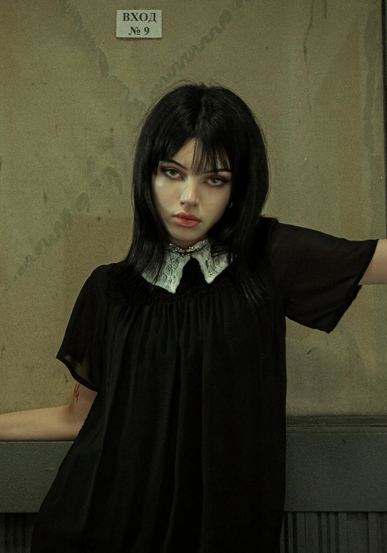 ❦ Black lace on front & back yoke