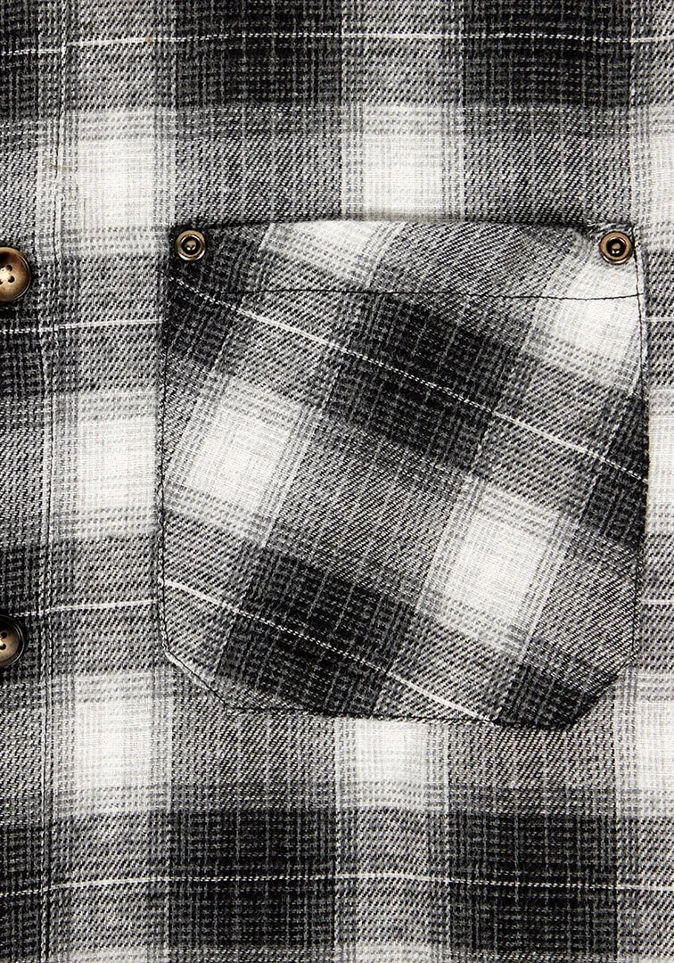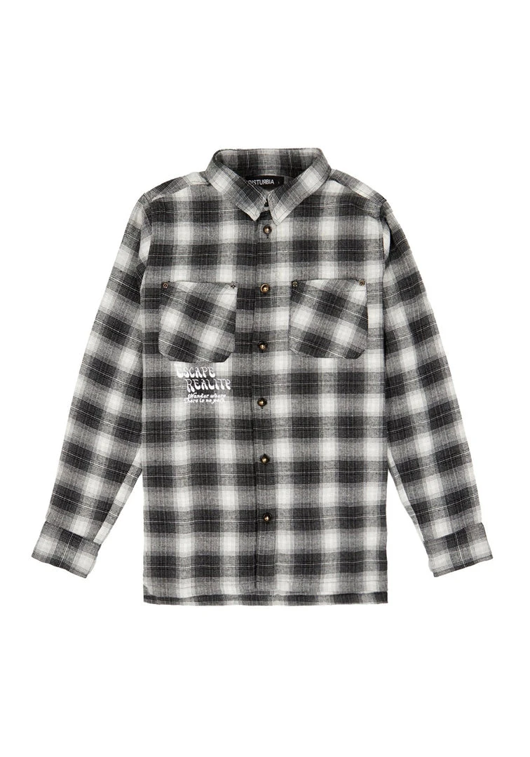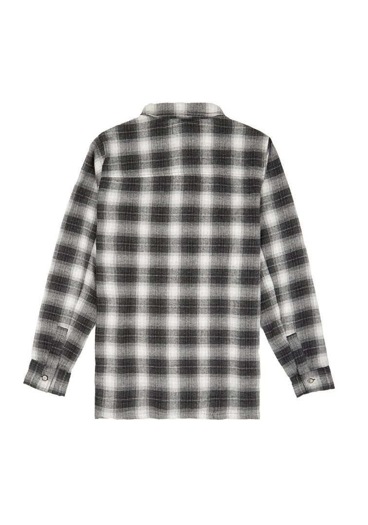 – Long sleeve buttoned plaid shirt in grey