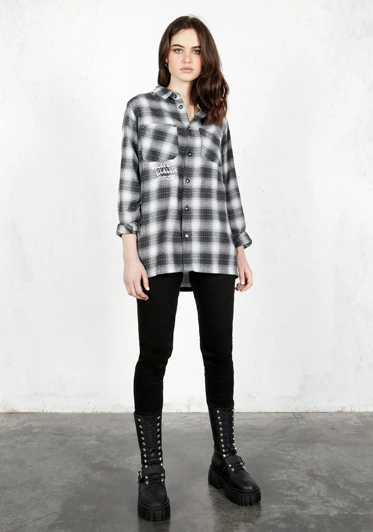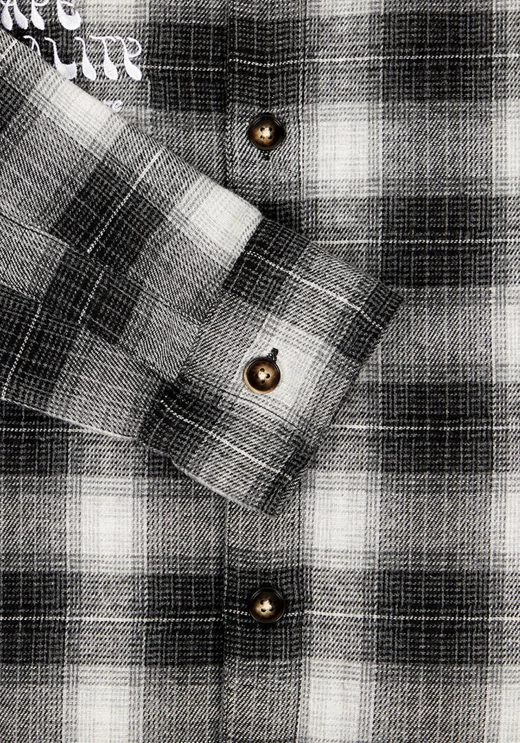 – Grunge-influenced grey plaid all-over design