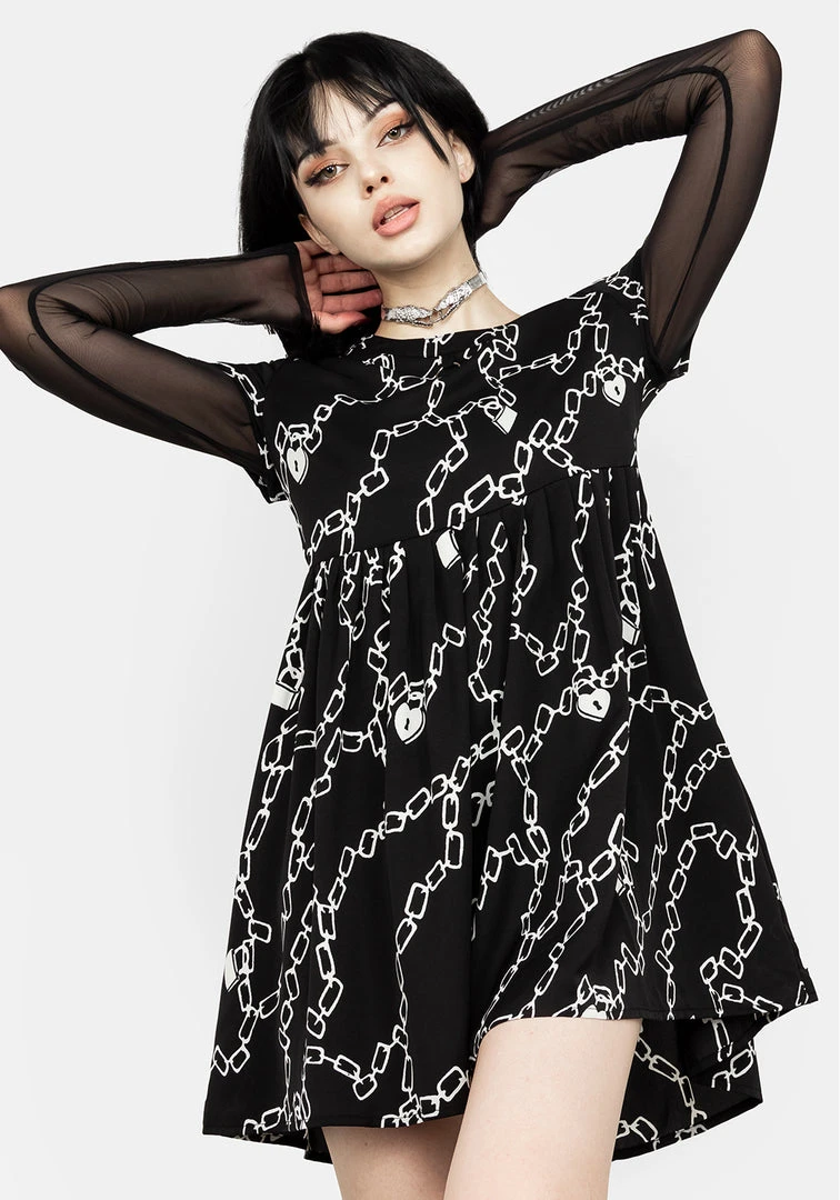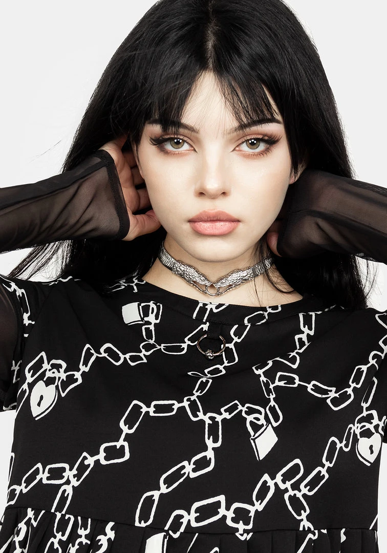 ❦ Black breathable fabric with white love-lock & chain all-over print