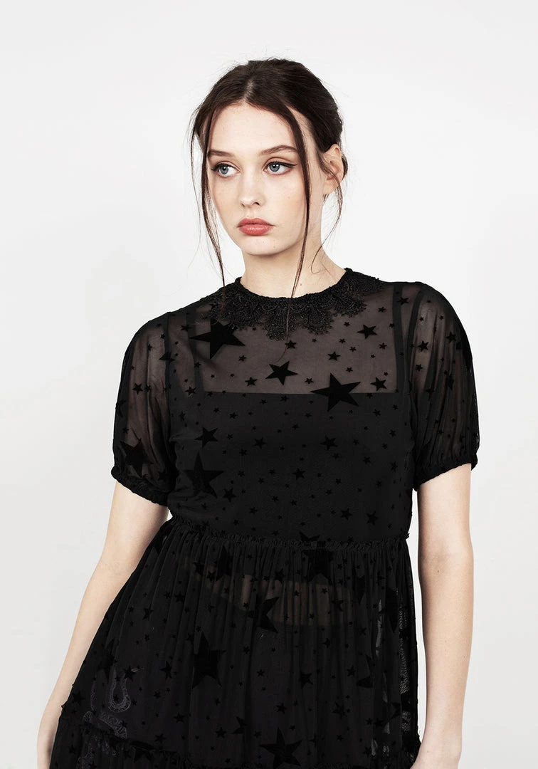 ★ Sheer puff sleeve dress with black stars