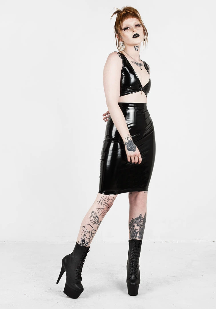 ✦ Gathered front meets in silver O-ring with spike charm to create deep V-neck