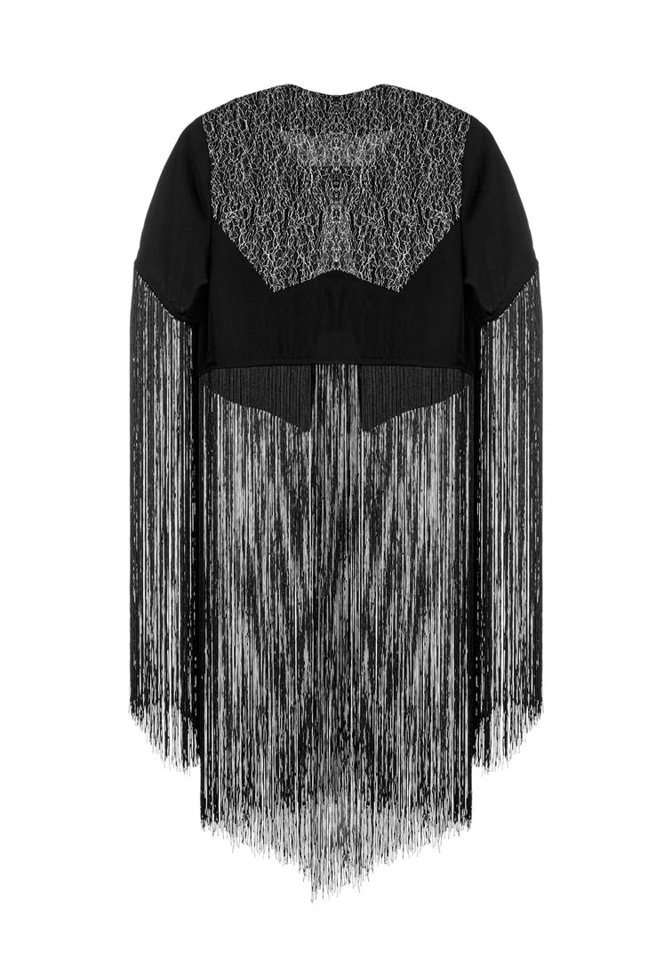 ✦ Fringed hems on short sleeves and cropped waistband flow with your every moveÂ