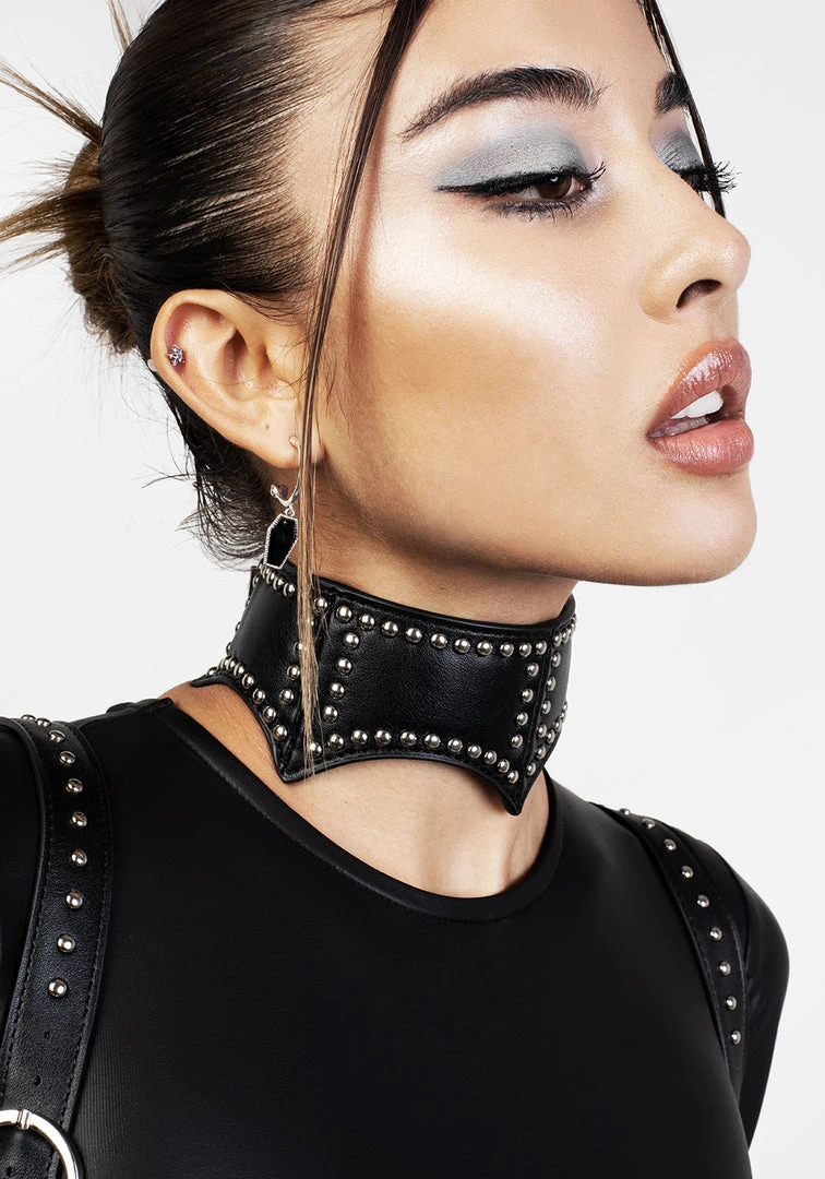 ✦ Faux leather batwing choker  Â